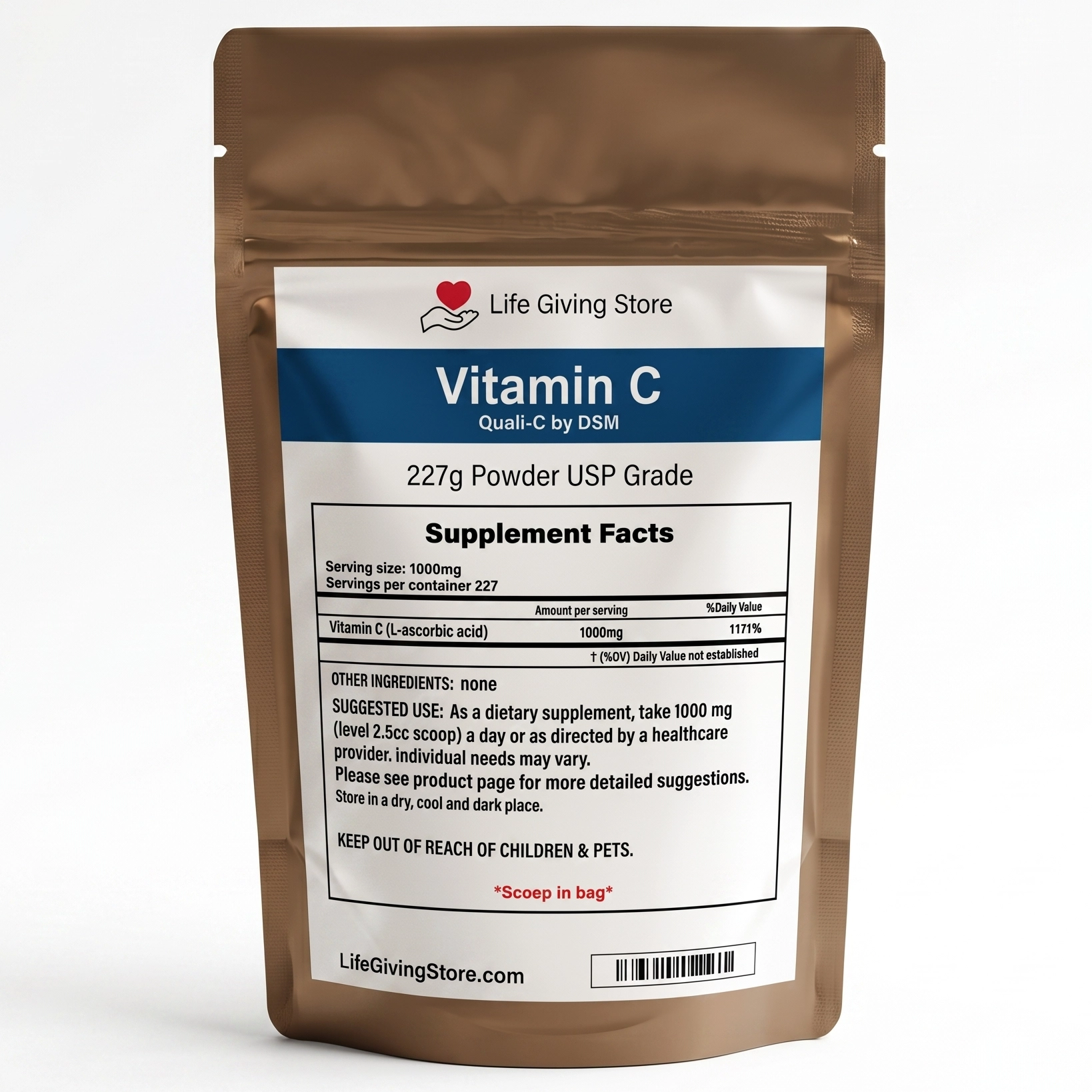 Quali-C Vitamin C is known throughout the world as being the most pure, highest quality, NON-GMO, Vitamin C available. Made by DSM in Scotland, United Kingdom. It is one of the only Vitamin C that is not made in China. This is without a doubt the highest grade Vitamin C available on the market and the same one that we take at home.