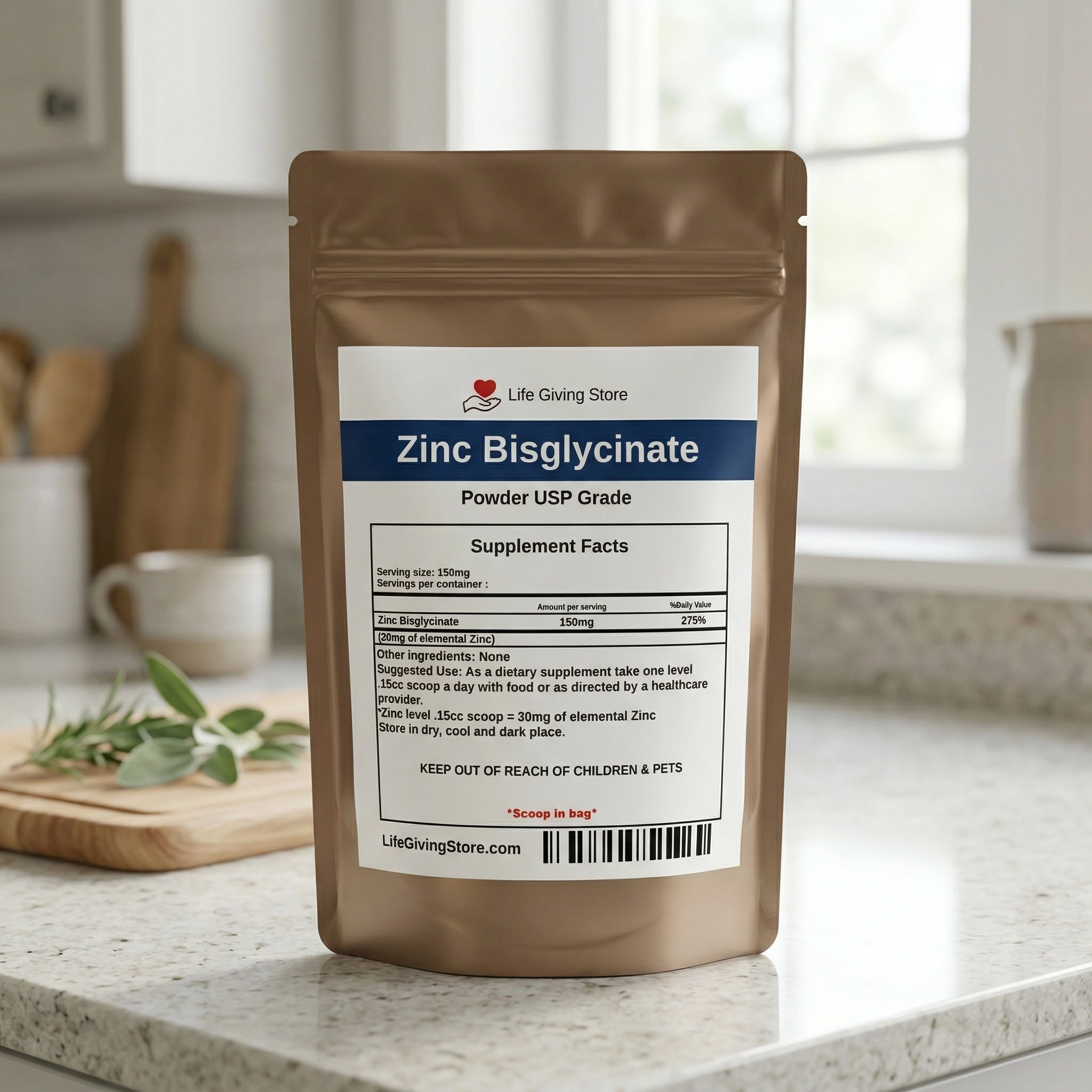 150mg (One level .15cc scoop) Zinc Bisglycinate contains 30mg of Elemental Zinc